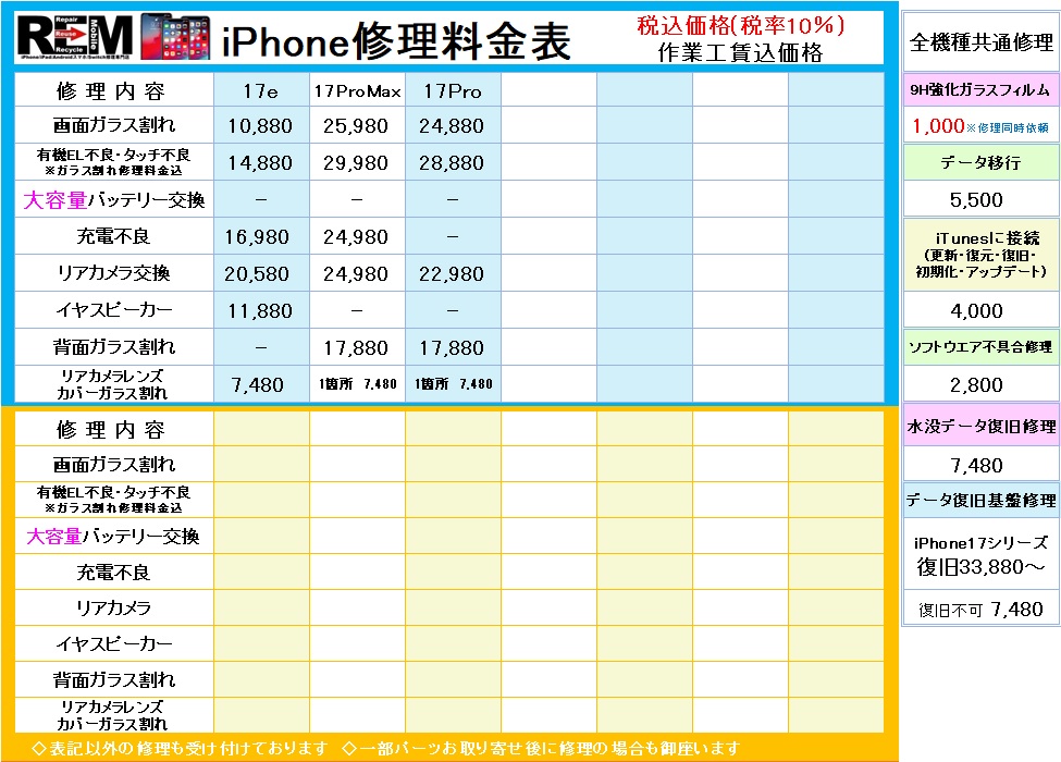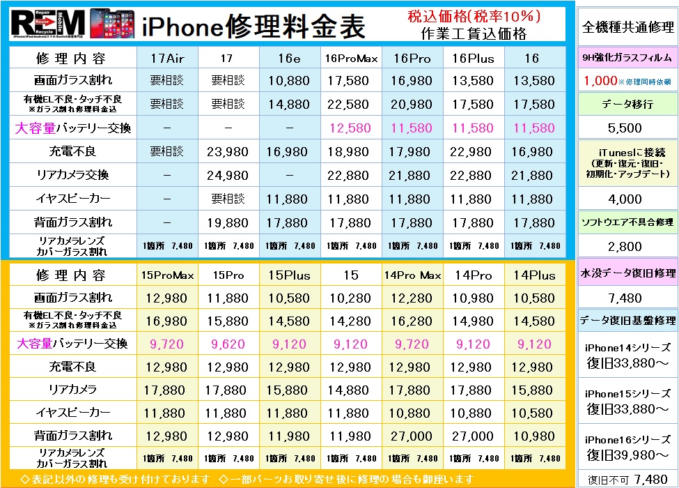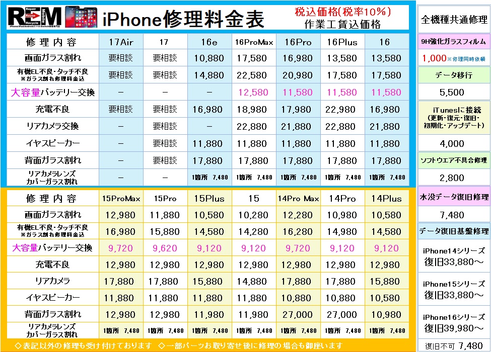 iPhone修理作業工賃は修理料金に含まれております。別途請求することは御座いません。