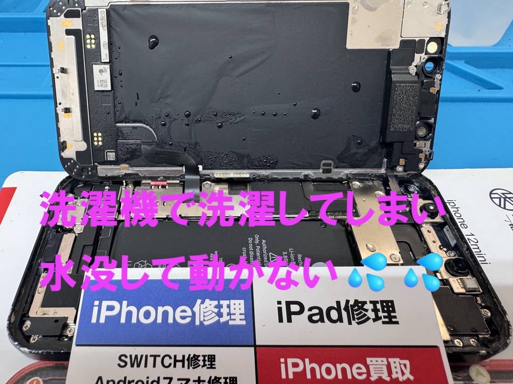 洗濯機で洗濯して水没して動かない状態でしたので、水没データ復旧修理で対応させていただきました。