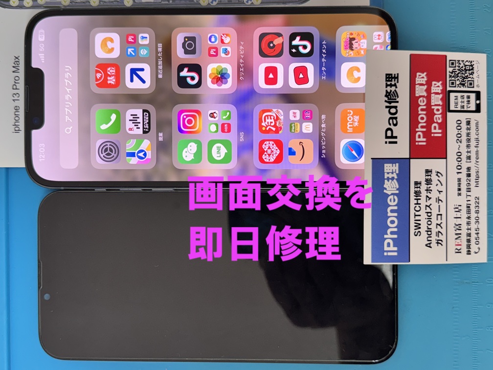 本日の修理事例は、富士市からお越しのお客様よりiPhone13ProMaxの修理依頼です。