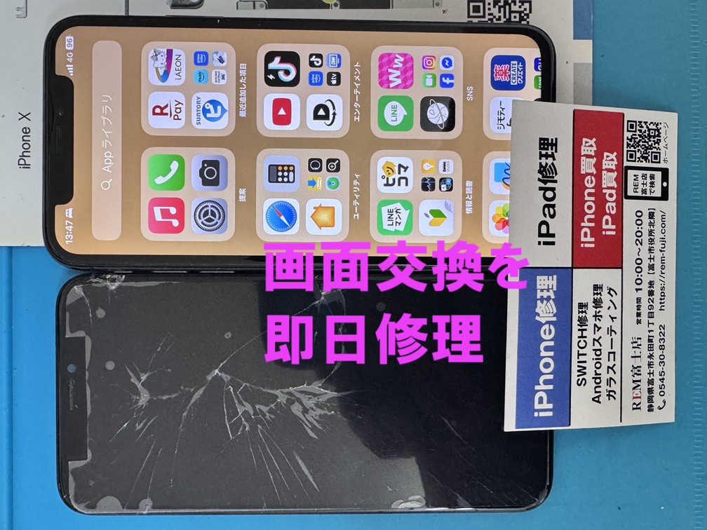 本日の修理事例は、静岡市からお越しのお客様よりiPhoneXの修理依頼です。