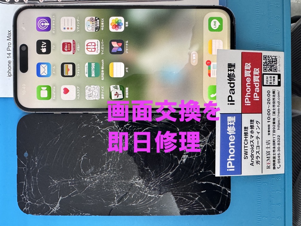 本日の修理事例は、富士市からお越しのお客様よりiPhone14ProMaxの修理依頼です。