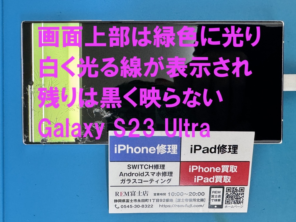 本日の修理事例は、富士市からお越しのお客様よりGalaxy S23 Ultraの修理依頼です。