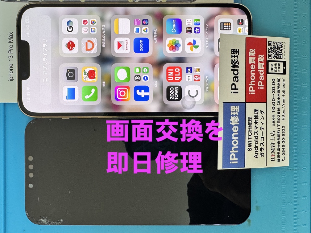 本日の修理事例は、富士市からお越しのお客様よりiPhone13ProMaxの修理依頼です。