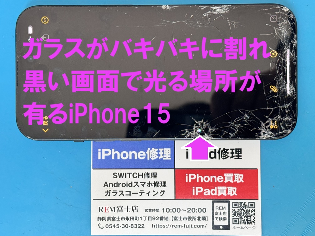 本日の修理事例は、富士市からお越しのお客様よりiPhone15の修理依頼です。