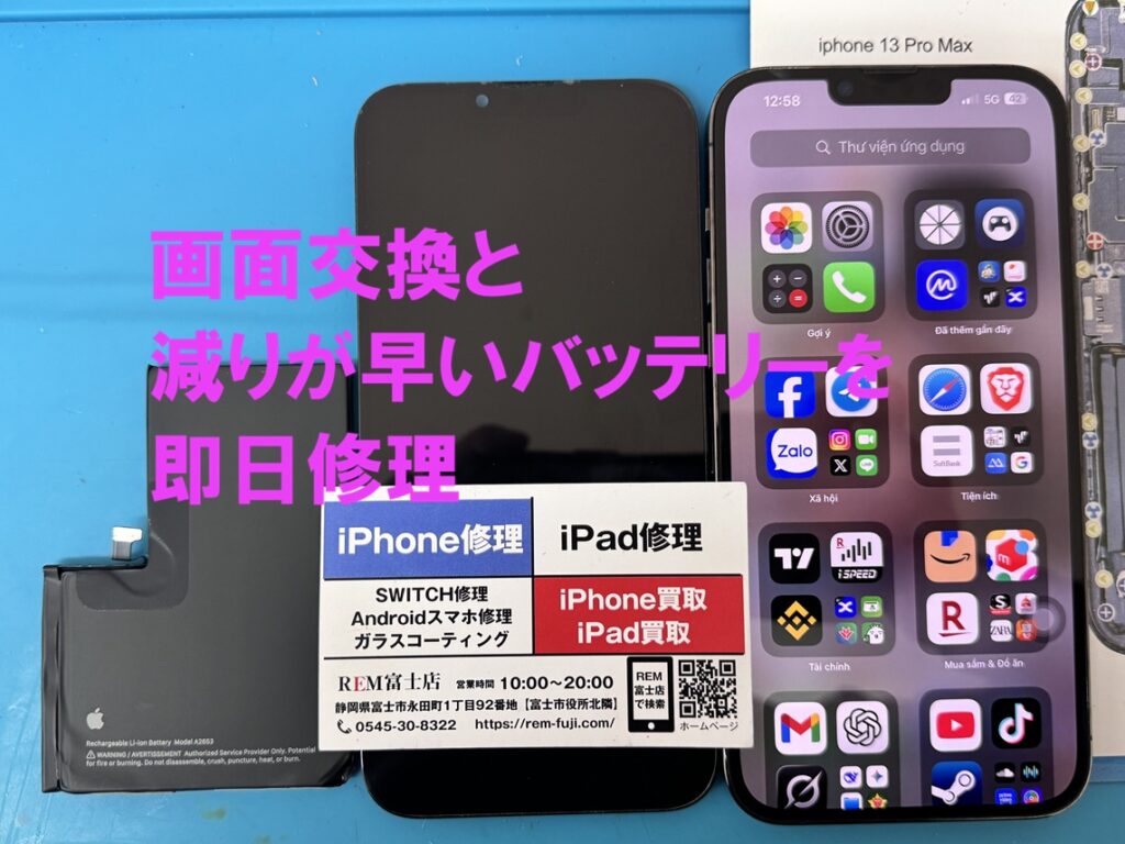 本日の修理事例は、富士市からお越しのお客様よりiPhone13ProMaxの修理依頼です。