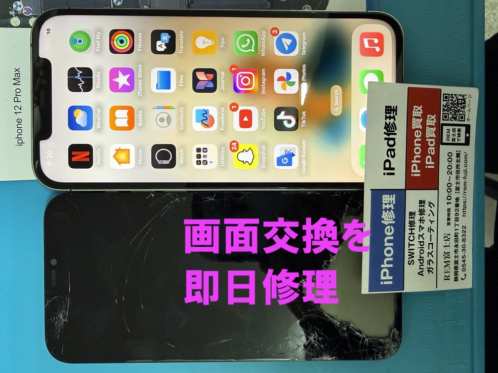 本日の修理事例は、富士市からお越しのお客様よりiPhone12ProMaxの修理依頼です。