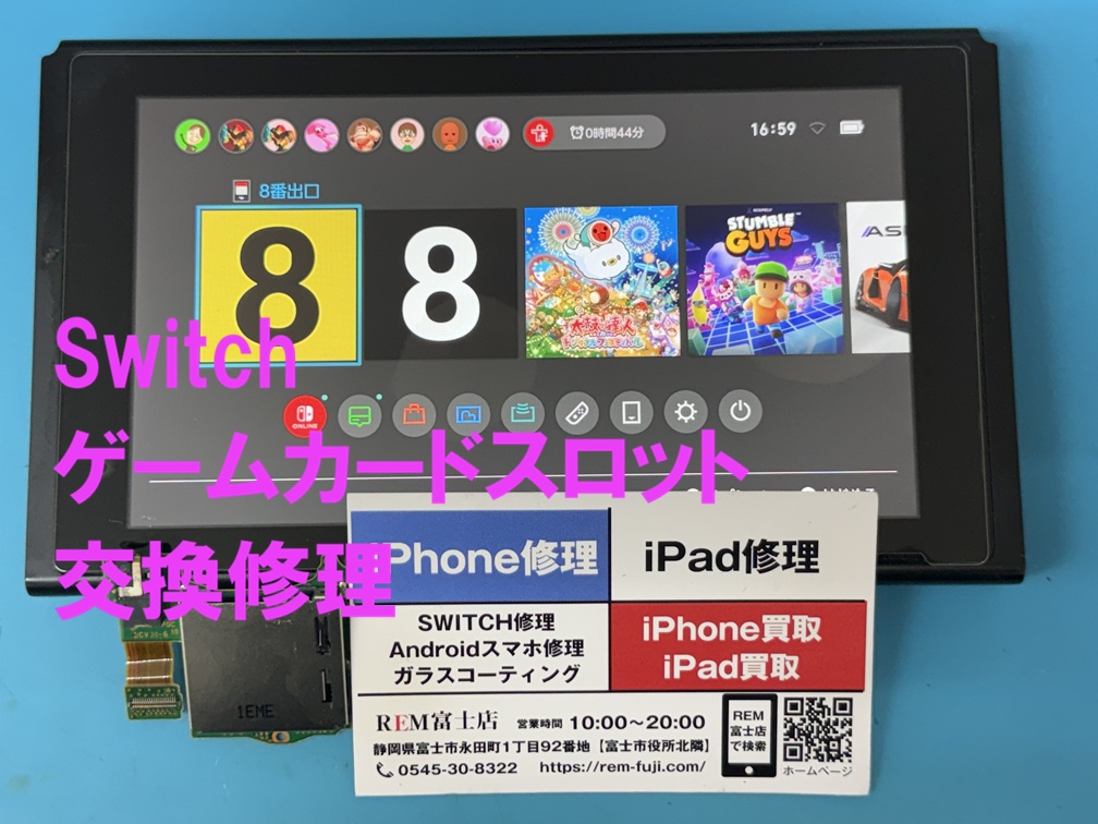 REM(アールイーモバイル)富士店では、Switchのタッチパネル破損、液晶パネルが映らない、バッテリー交換、充電できない、Joy-Conのアナログスティックが勝手に動く、電源が入らないなど幅広い修理に対応いたします。