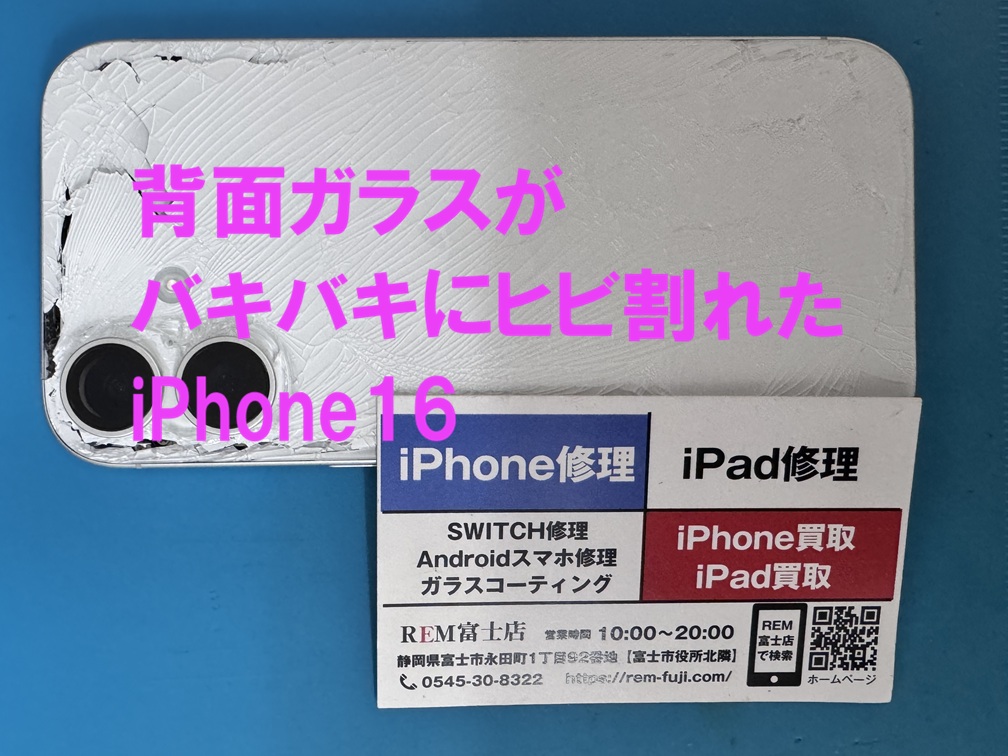 本日の修理事例は、富士市からお越しのお客様よりiPhone16の修理依頼です。