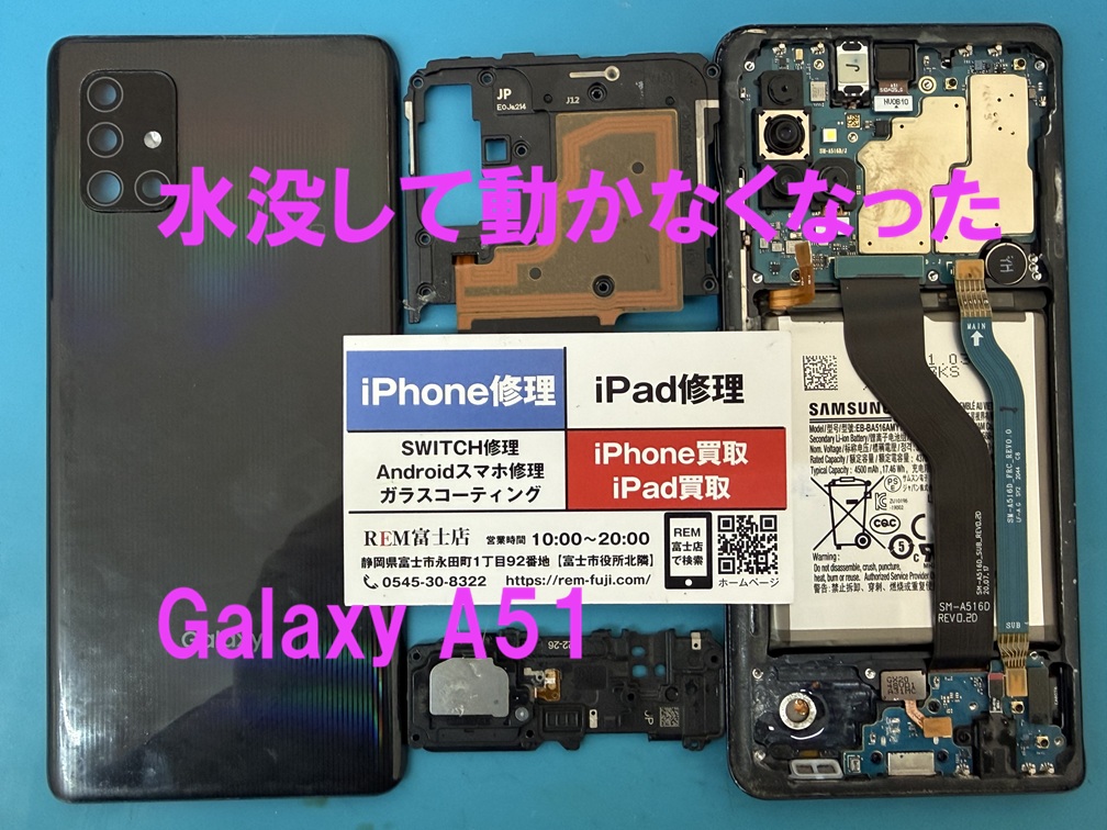 本日の修理事例は、富士市からお越しのお客様よりGalaxy A51の修理依頼です。