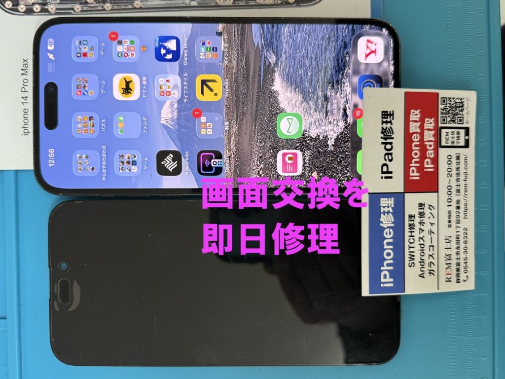 本日の修理事例は、富士市からお越しのお客様よりiPhone14ProMaxの修理依頼です。