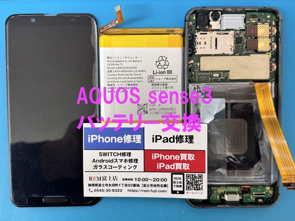 本日の修理事例は、焼津からお越しのお客様よりSHARP AQUOS sense3の修理依頼です。