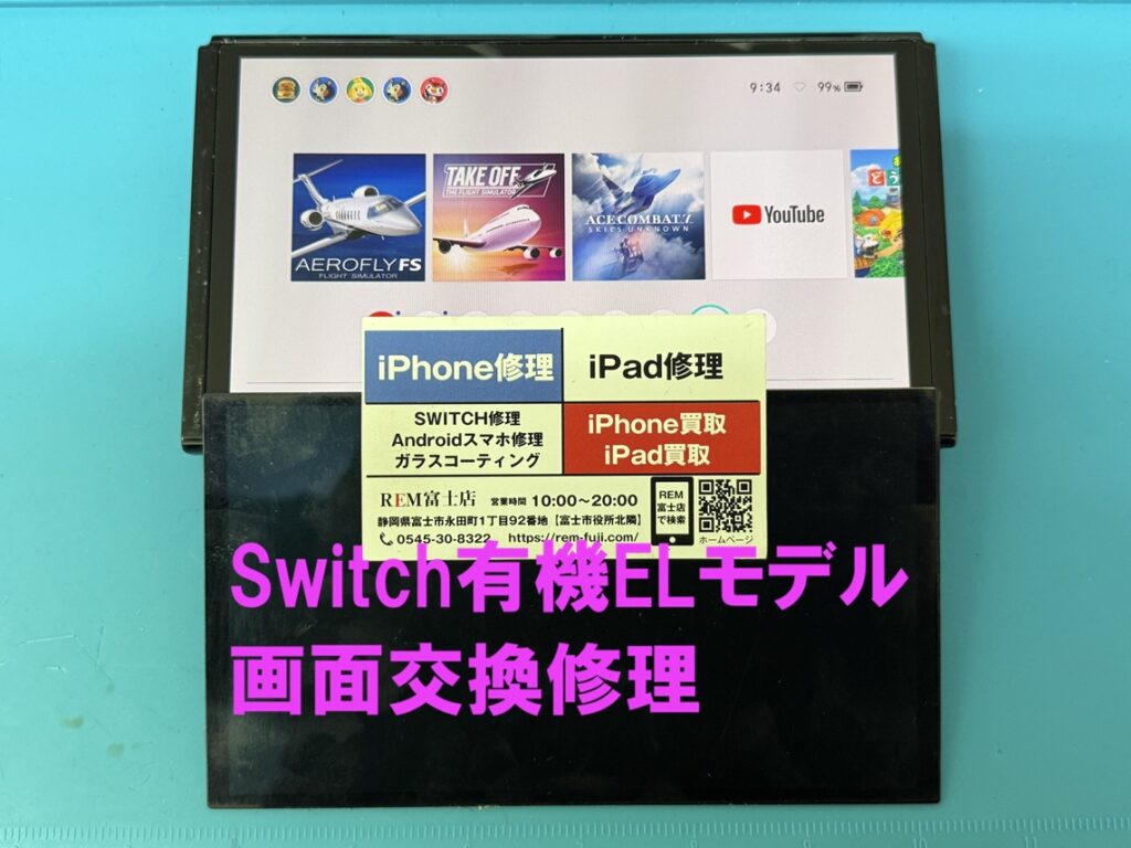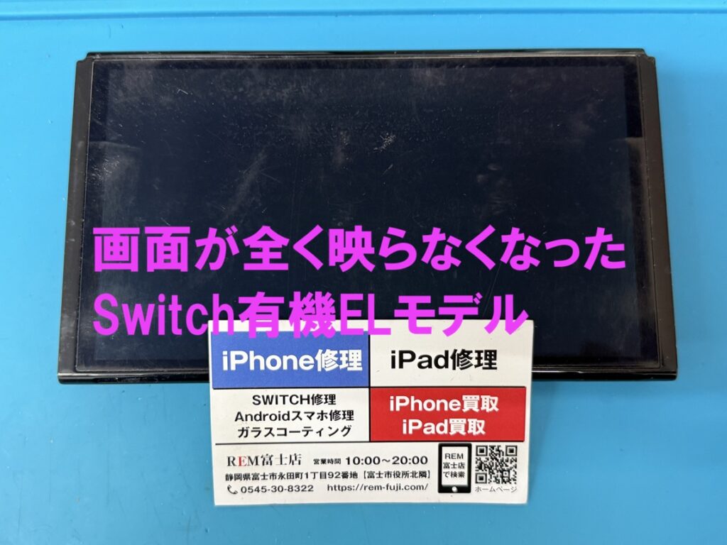 REM(アールイーモバイル)富士店では、Switchのタッチパネル破損、液晶パネルが映らない、バッテリー交換、充電できない、Joy-Conのアナログスティックが勝手に動く、電源が入らないなど幅広い修理に対応いたします。